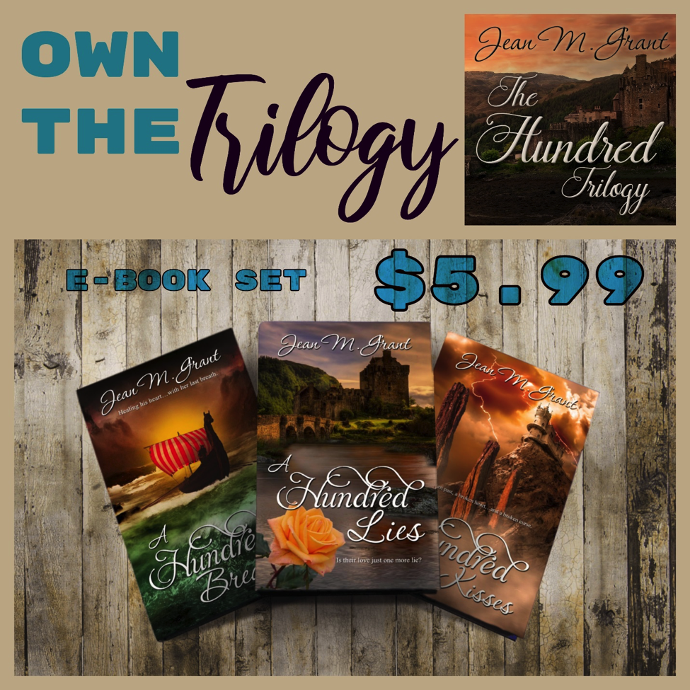 One of my favorite people and writers, fellow Wild Rose Sistah JEAN M. GRANT has recently put together a boxed set of her Scottish-themed novels titled THE HUNDRED TRILOGY. All ebooks are now priced at just $2.99 each or the trilogy is the amazeballs price of $5.99.