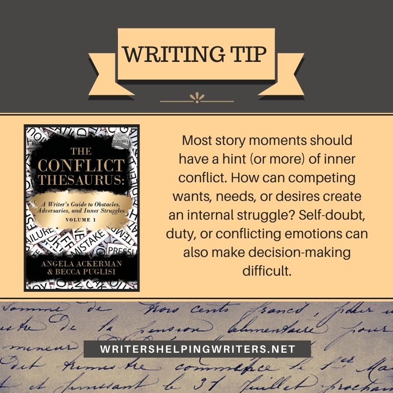 As a writer, Do you struggle to come up with ideas for conflict? If so, this blog post goes into the best source for conflict that will work with your story: https://writershelpingwriters.net/2021/09/does-your-story-need-more-conflict-tap-this-powerful-source/