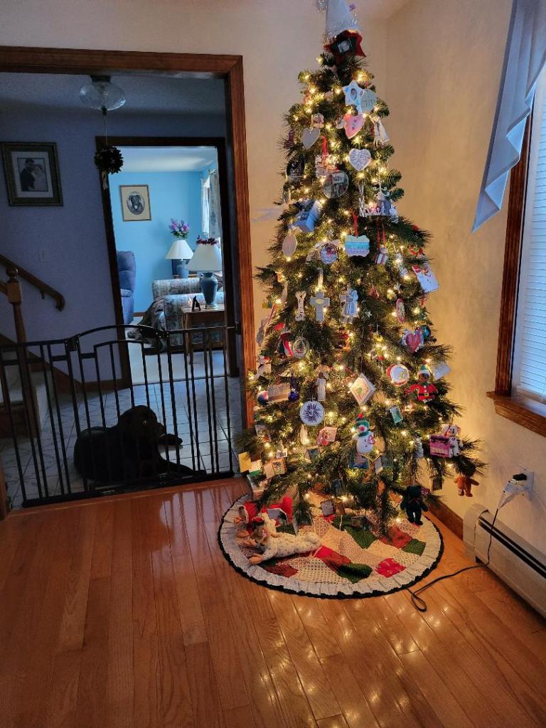 The 2022 Jaeger scrawny tree! Complete with family dog to the left of the tree!