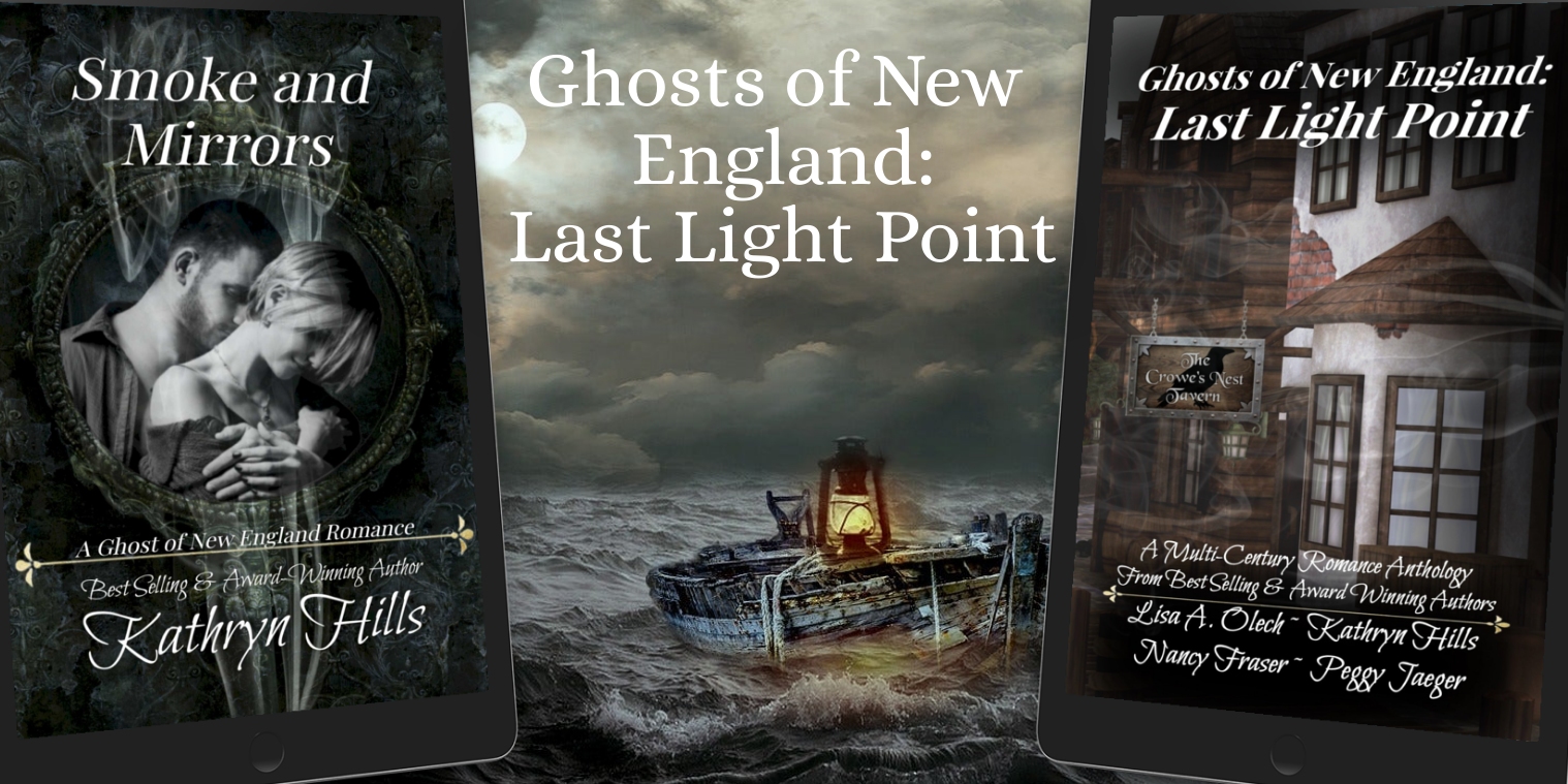 The second story in the Multi-century ghost anthology GHOSTS OF NEW ENGLAND: LAST LIGHT POINT is SMOKE AND MIRRORS by author ( and friend!) KATHRYN HILLS