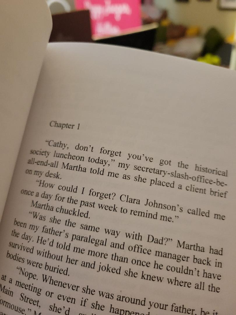 “Cathy, don’t forget you’ve got the Historical Society luncheon today,” my secretary-office-be-all-end-all Martha, told me as she placed a client brief on my desk.