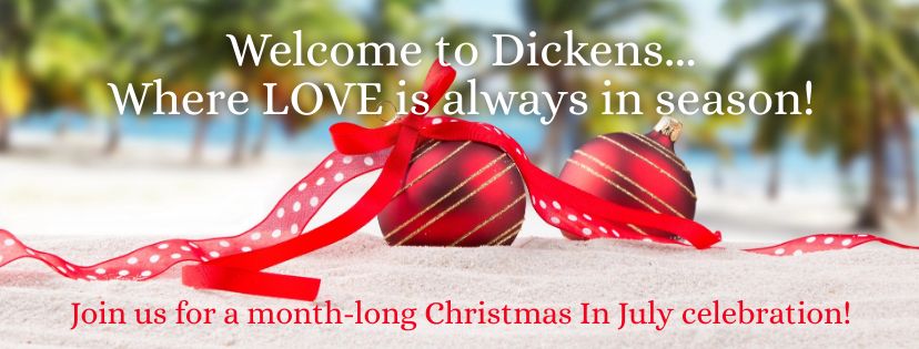 Starting today, I’ll be taking over the CHRISTMAS COMES TO DICKENS Facebook page for my turn at CHRISTMAS IN JULY.