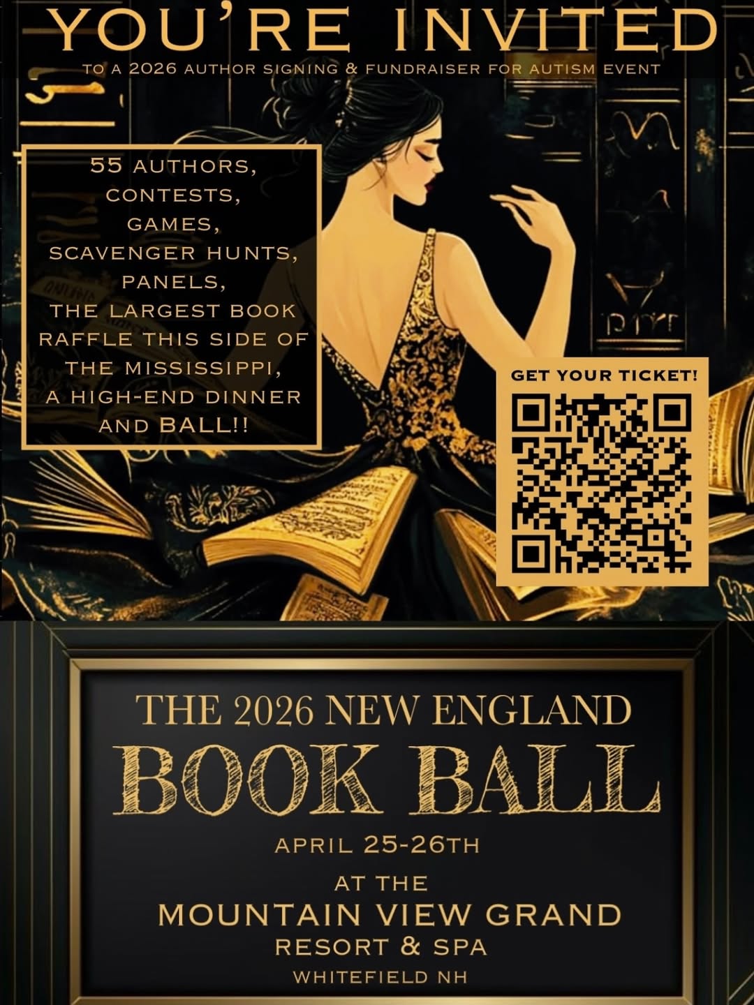 - The following weekend, April25/26 I will be at the NEW ENGLAND BOOK BALL up in Mt. Washington, NH. There’s so much that’s going to be happening during this event. I’m on several author panels, including one on mental health, plus there is a Book Cover contest, and a Ball!!!