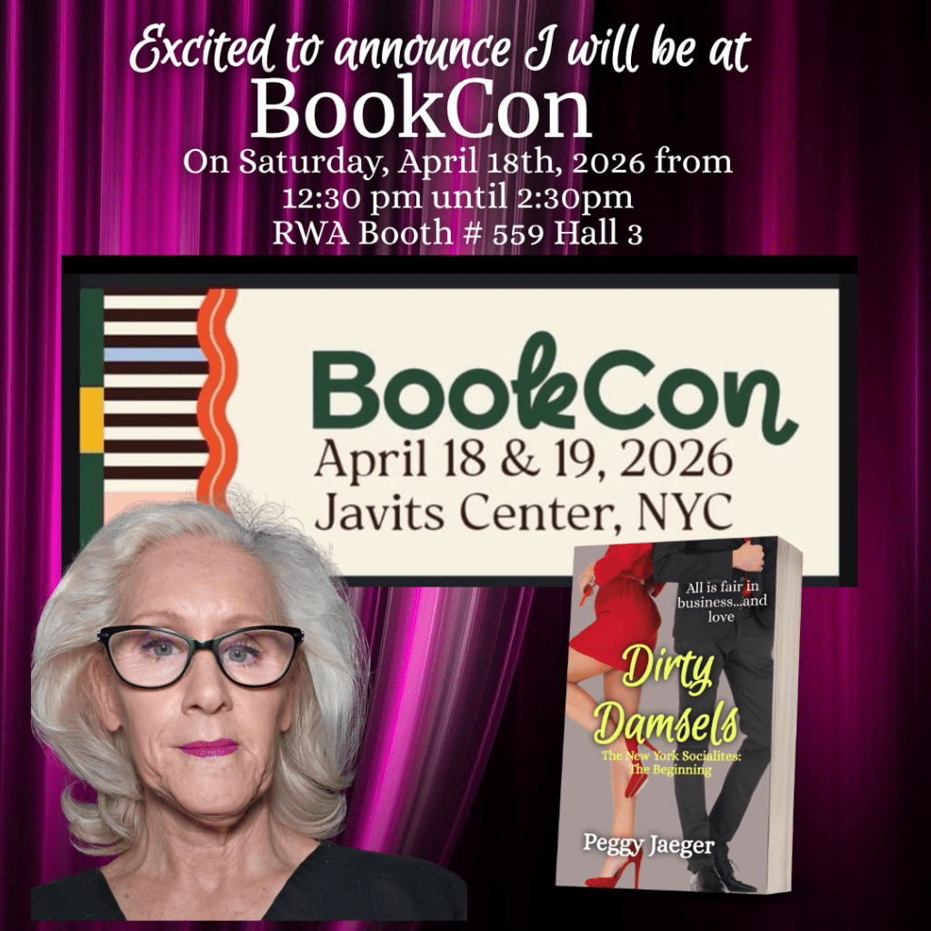 - On April 18, 2026 from 1230 until 230 pm I will be at BOOKCON at the Javits Center in New York. I’ll be at the RWA booth, # 559 in Hall 3 and I’ll have copies of the rebranded DIRTY DAMSELS with me for sale. Plus, of course, I’m gonna have swag, so if you were lucky enough to get tickets to Bookcon, come see me! PLEASE!! LOL