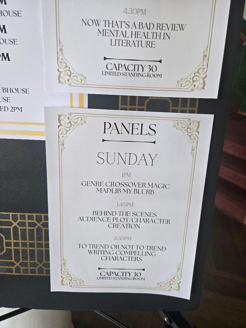 It was wonderful communing with my author friends, who I don’t get to see enough because — life, and writing! – and I so enjoyed meeting scores of new-to-me readers.