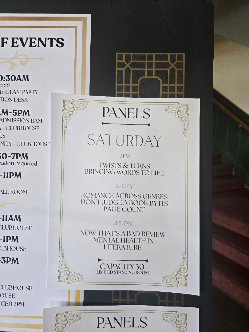 Debut author events are either good, fabulous, or go bust for so many reasons. This one was fabulous because of the organization, thoughtfulness of the coordinators to make things easy for readers and authors, and then the support of the reading community who came out in droves, both days, to buy books, meet their fav authors, find some new ones to enjoy, and to support the most fundamental element of our society – reading and free speech.