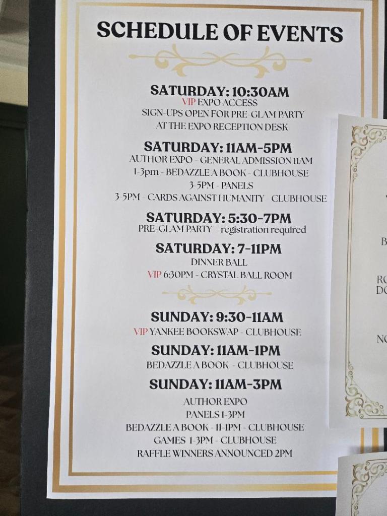 The event was loaded with not only authors and vendors promoting and selling their books and wares, but author panels, a Yankee Book Swap, a book bedazzling event, and an amazing Dinner/Ball that took place Saturday night.