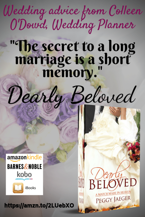 “Oh, good Lord. Thanks for the head’s up. I’ll make sure the moms are nowhere in sight when she gives them out. I don’t relish having to listen to one more complaint about this wedding. I’ve had enough for the past week to last me until junior here”—she patted her round tummy—“is off to college.”