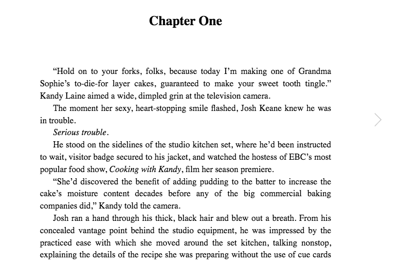 Kandy Laine built her wildly popular food empire the old-fashioned way—starting with the basic ingredients of her grandmother’s recipes and flavoring it all with her particular brand of sweet spice. From her cookbooks to her hit TV show, Kandy is a kitchen queen—and suddenly someone is determined to poison her cup. With odd accidents and threatening messages piling up, strong-willed Kandy can’t protest when her team hires someone to keep her safe—but she can’t deny that the man for the job looks delicious. . .