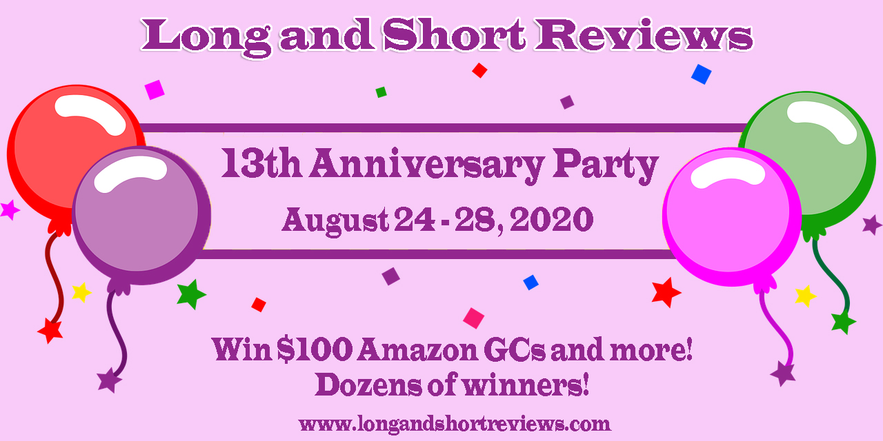 I’m participating in the Long and Short Reviews 13th Anniversary Party and guess what? There’s a scavenger hunt and a rafflecopter!!!! hee hee