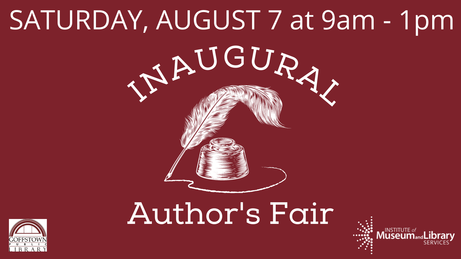Join us for the inaugural Goffstown Public Library Author’s Fair; meet and greet artists who use words to fashion action, emotion, and inspiration. Stop by the Speaker’s Corner to hear selections read out loud, chat with the writers, purchase personally inscribed books.
