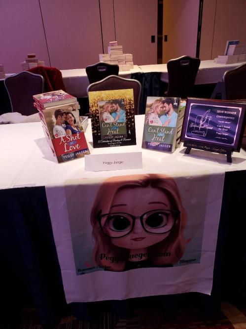 and you can see where I placed mine in the picture above of the table. The room, let me tell you, was jampacked with readers when the doors opened at 11. I had to turn my hearing aid DOWN because the level of excitement was shooting through me at warp speed! I gave away all my books – signed! Such a great turnout. And it was nice to connect with fellow Lyrical writers Susan Mann , Kate Pearce, and Mary Ann Marlowe.