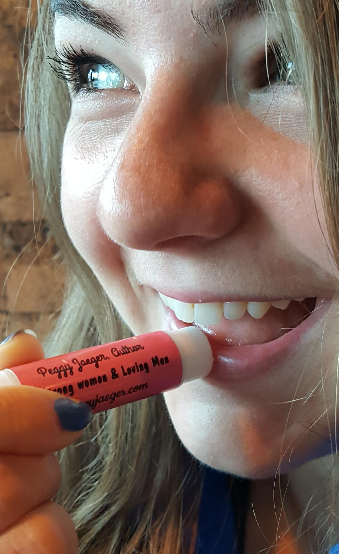I asked them each to pose with the chapstick because I wanted to put the pix on my Instagram account. You’ll see why when you see the picture below. They both very graciously, amid much eye rolling, complied. Once I snapped the pictures, my daughter said, “You can caption it Peggy Jaeger Brand Ambassadors.”