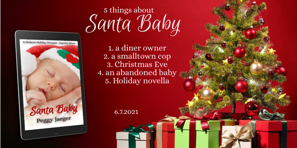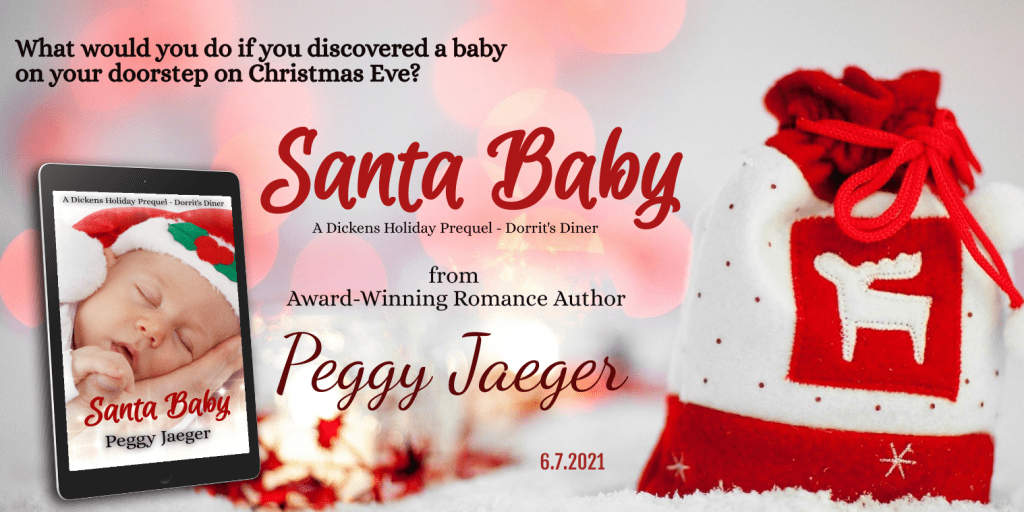 As part of the Dickens Holiday world, SANTA BABY is set 38 years in the past on a snowy Christmas Eve in the tiny town of Dickens – somewhere in New England. Amy Dorrit, owner of Dorrit’s Diner, discovers an abandoned baby -literally – on her doorstep before opening her eatery for the day. What happens next sets up the rest of Amy’s life – and the future Dorrit’s Diner books.