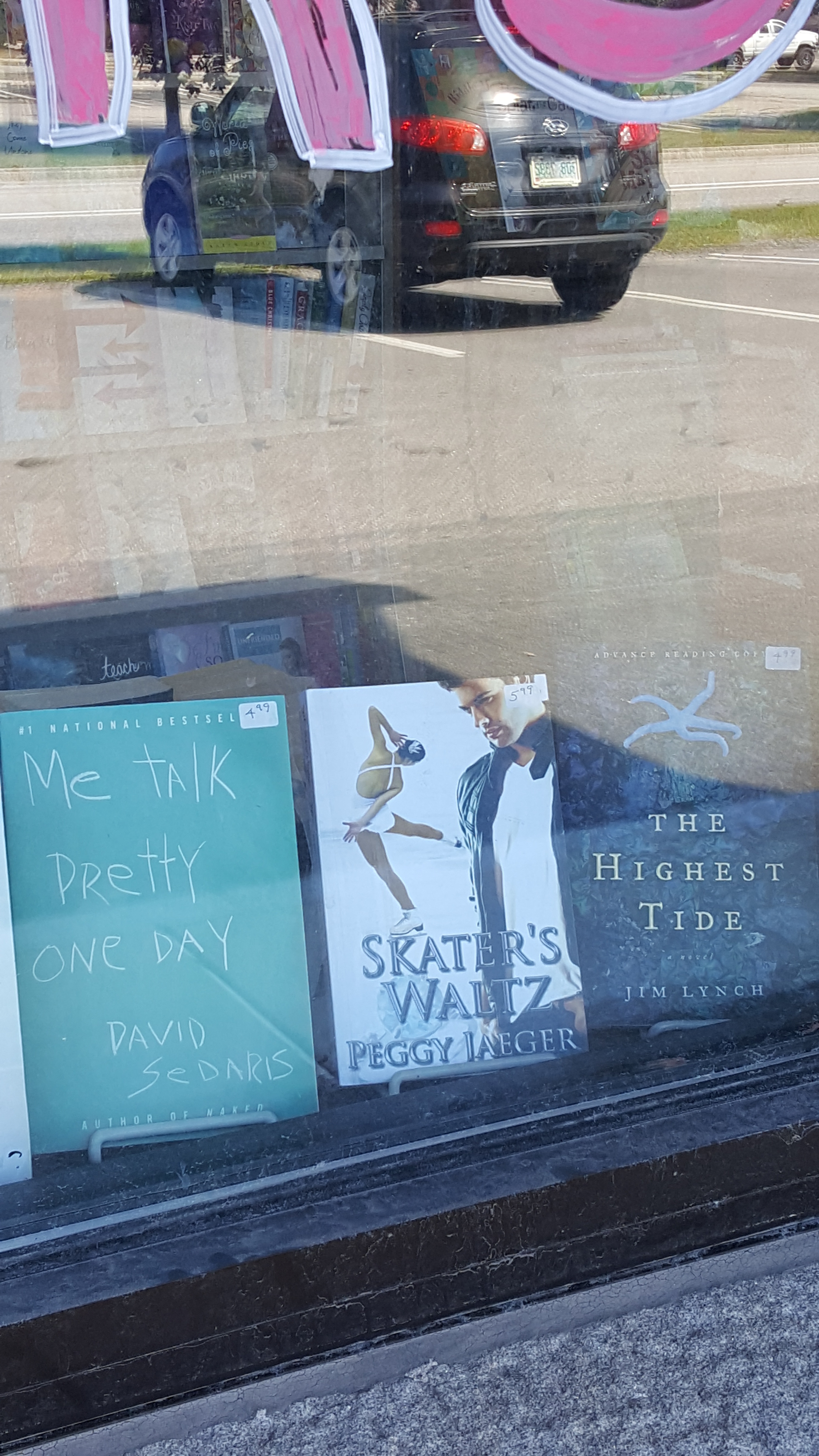 So, I was walking by a used bookstore in my town today and happened to glance at the front window. This is what I saw reflected back at me: