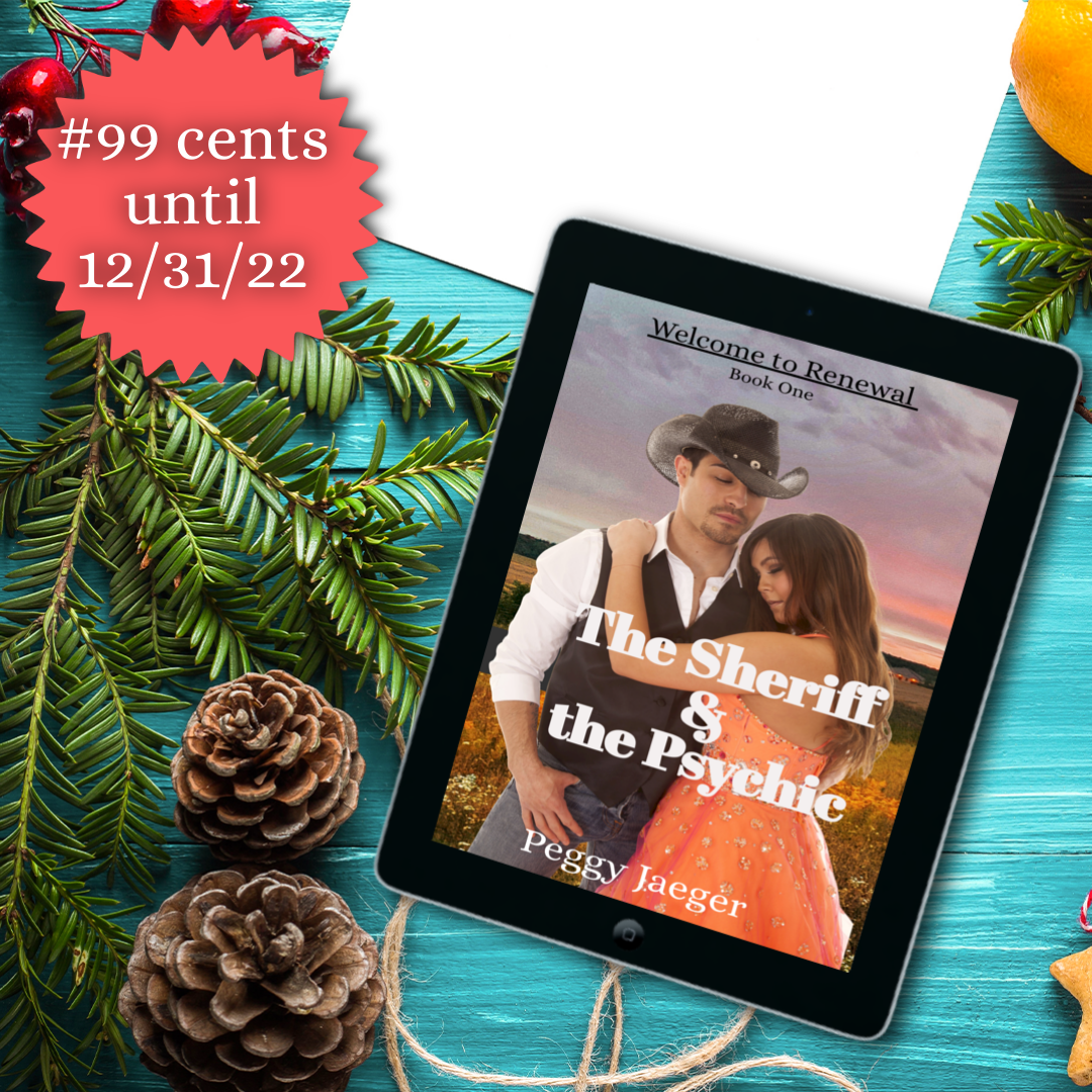 So, I’m still hawking my online Holiday Book store ( shameless self promotion, lol!) Today’s book is the 2022 first-book-in-the-Welcome to Renewal- series, THE SHERIFF & THE PSYCHIC. The title is kinda self explanatory about what the book is about, no? Hee hee. But just in case you aren’t sure, here’s the blurb before the snippet.
