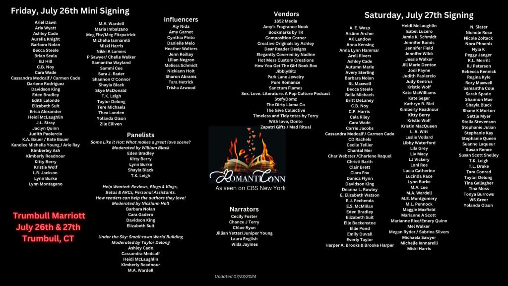Just a quick reminder, kids, that I’ll be appearing at the new romance-only themed book store LOVESTRUCK BOOKS AND CAFE today in Cambridge, MA, from 2-4pm, along with three other romance authors, C.W Rose, Cecilia Tan, and Kim Swizz.